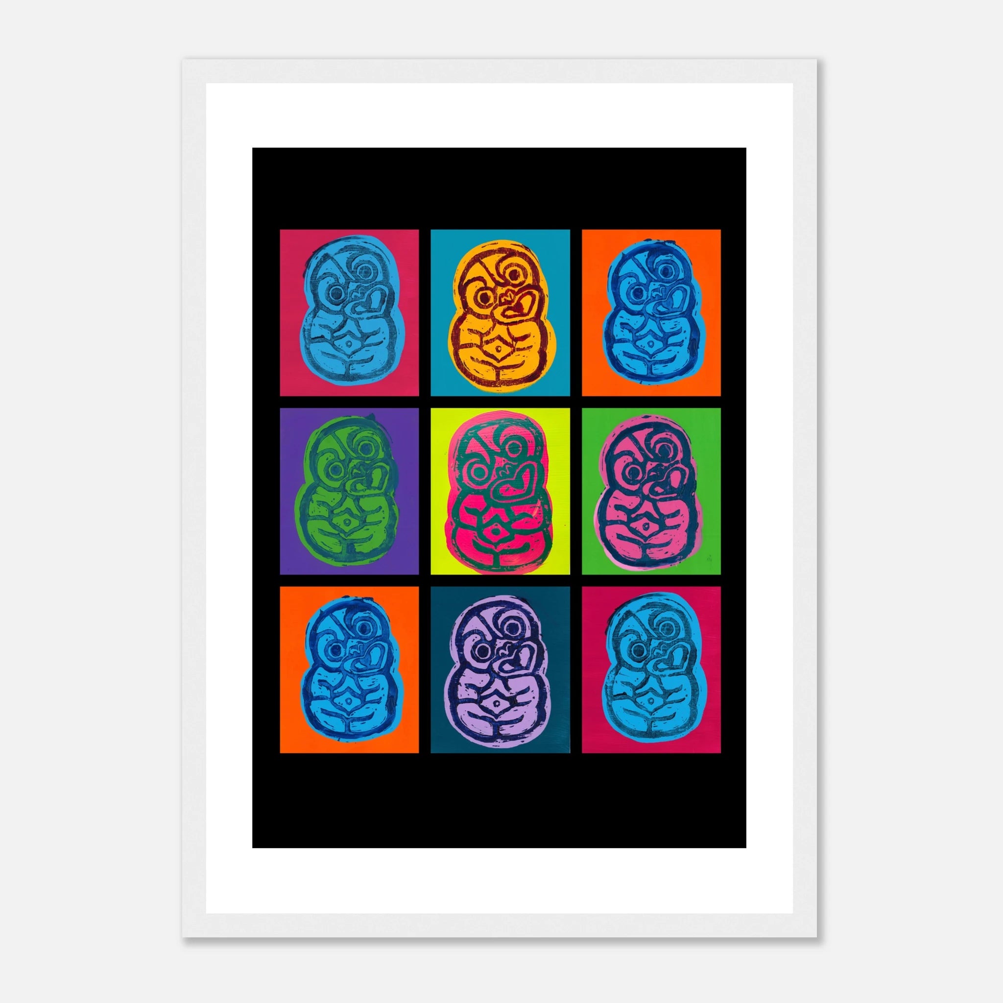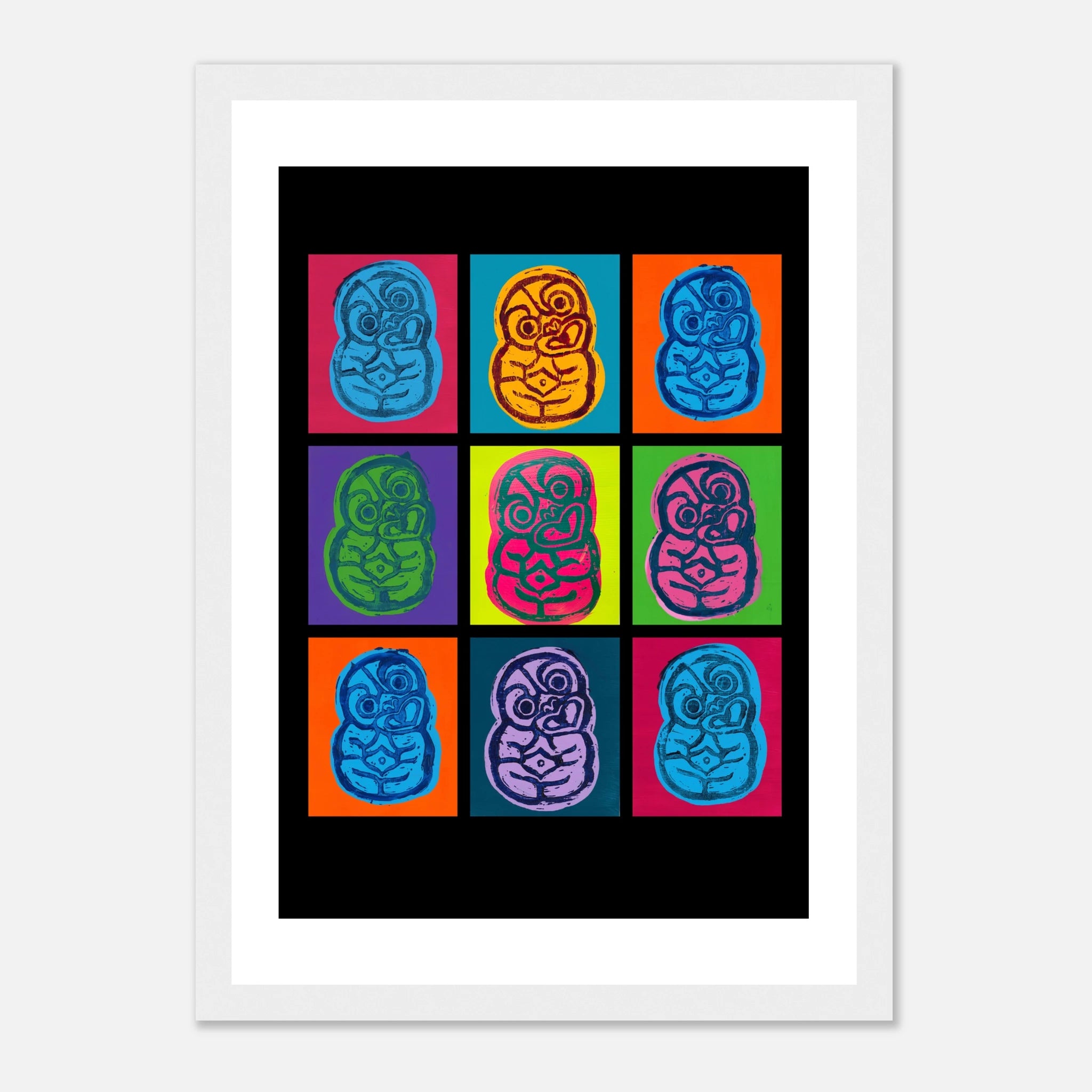 Created with lino print and acrylic paint, these pop art Tiki posters bring bold colour to any space.