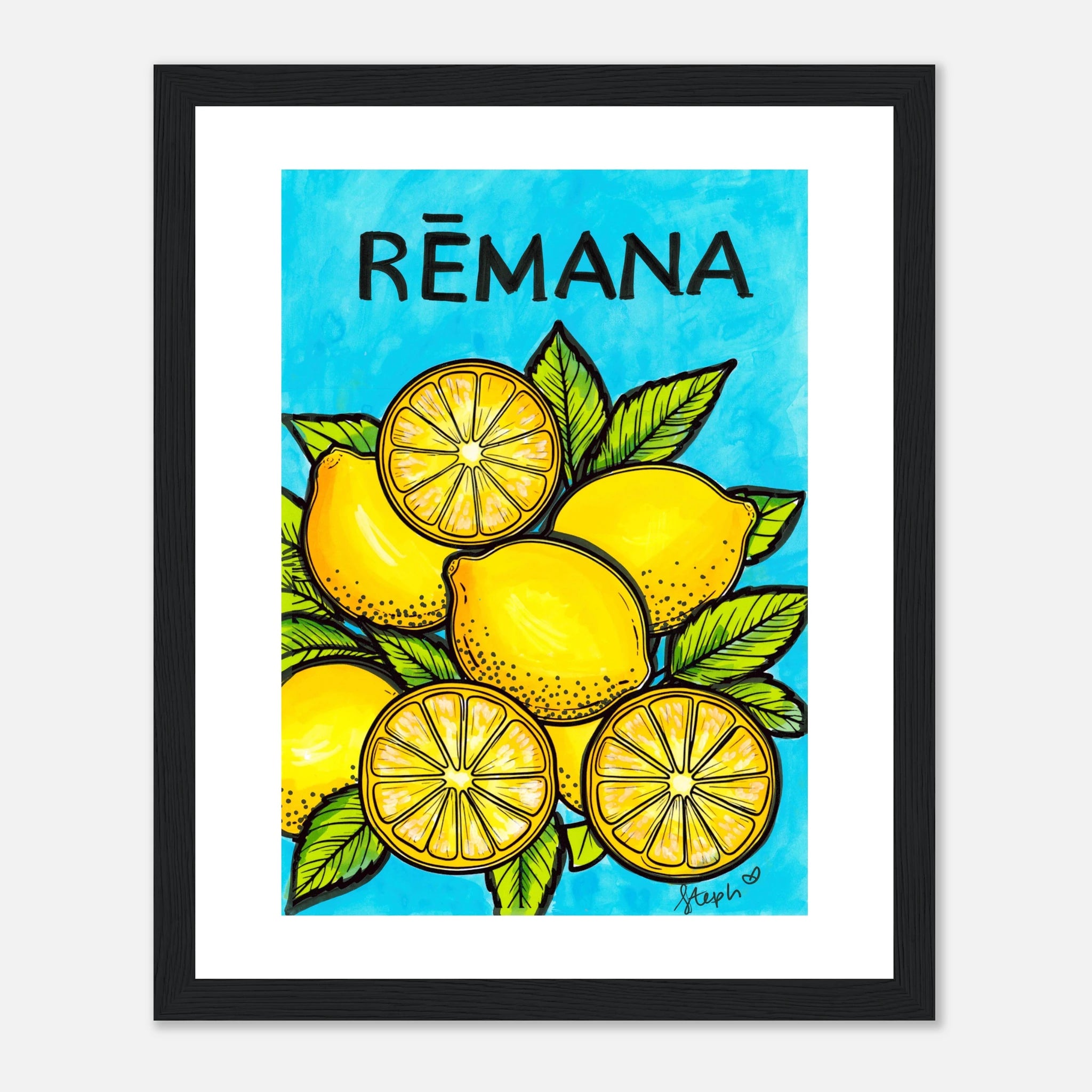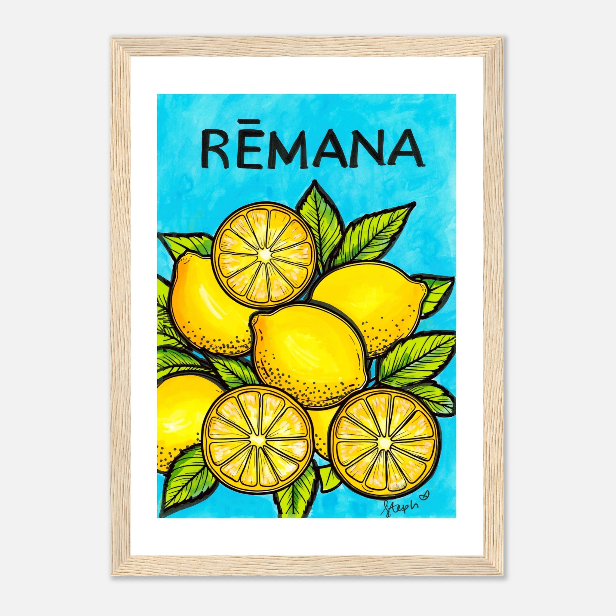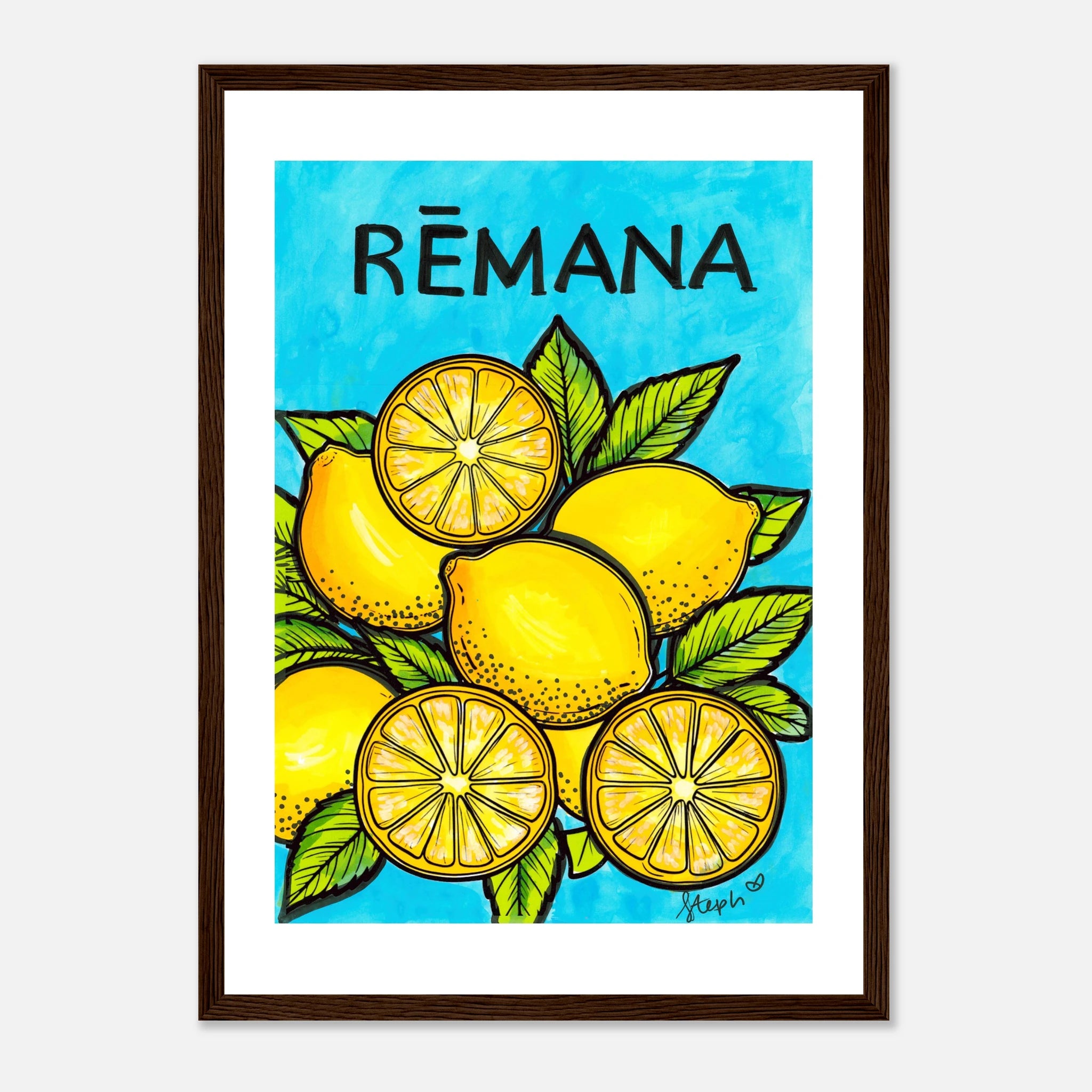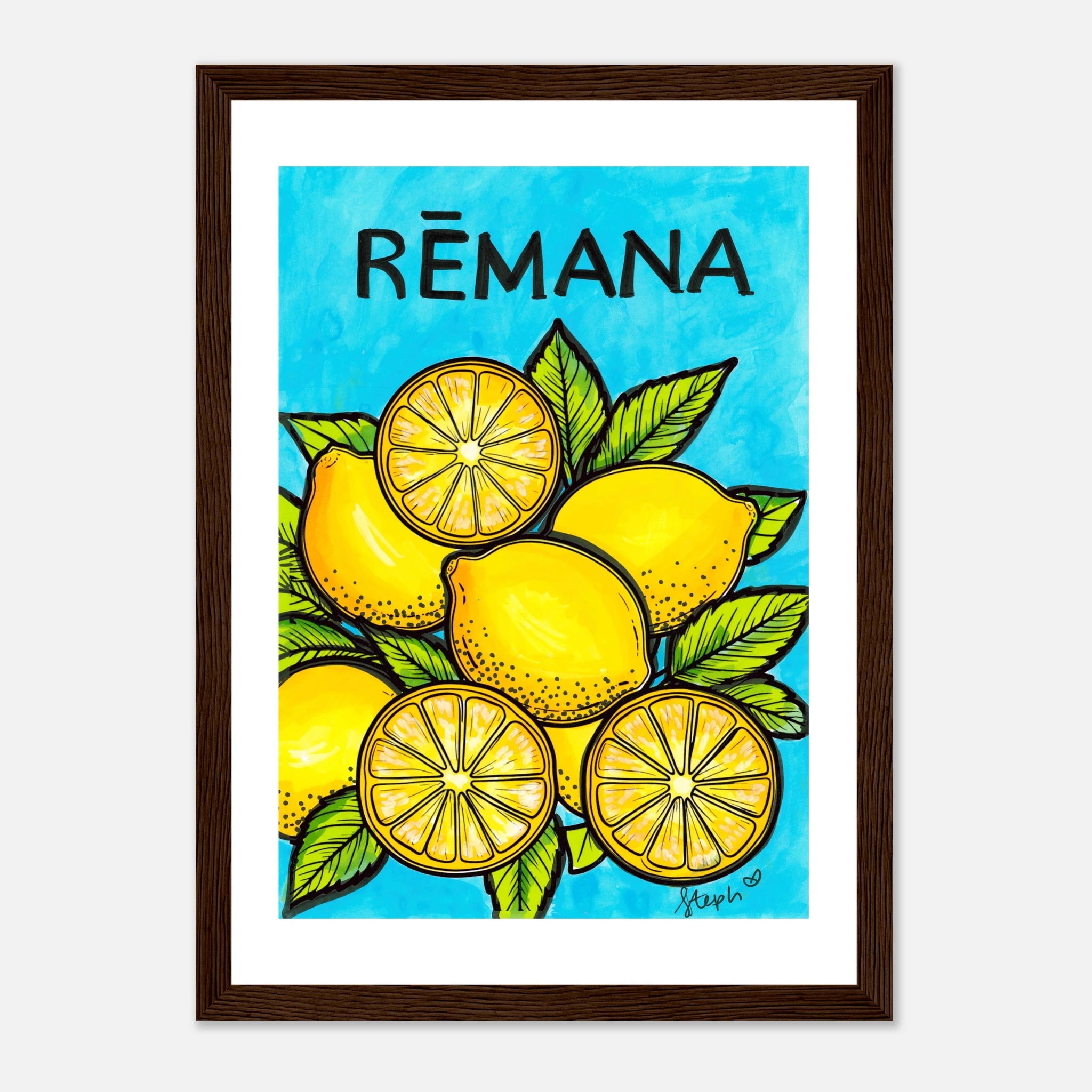 Original Materials Used: Watercolour, marker and ink on paper. Framed Wooden Print with a semi-glossy print.
