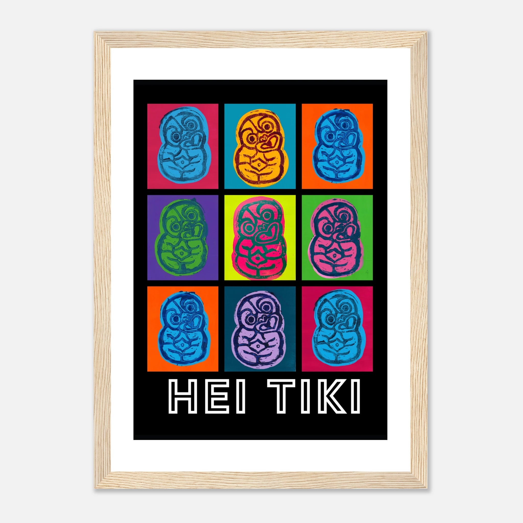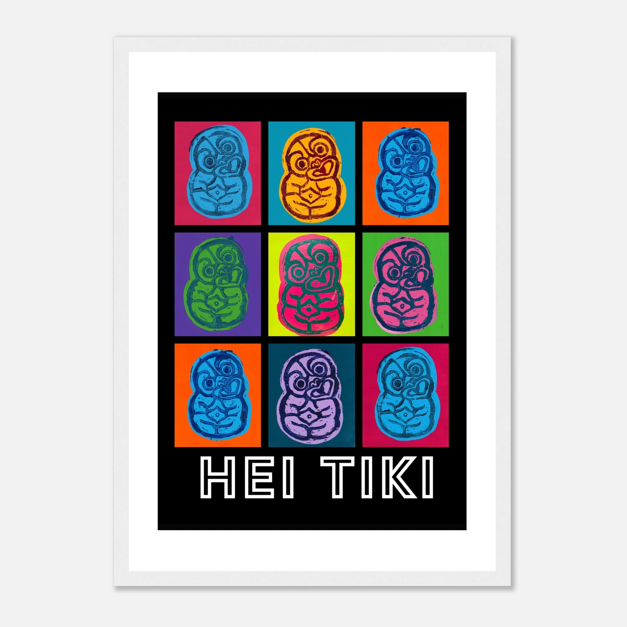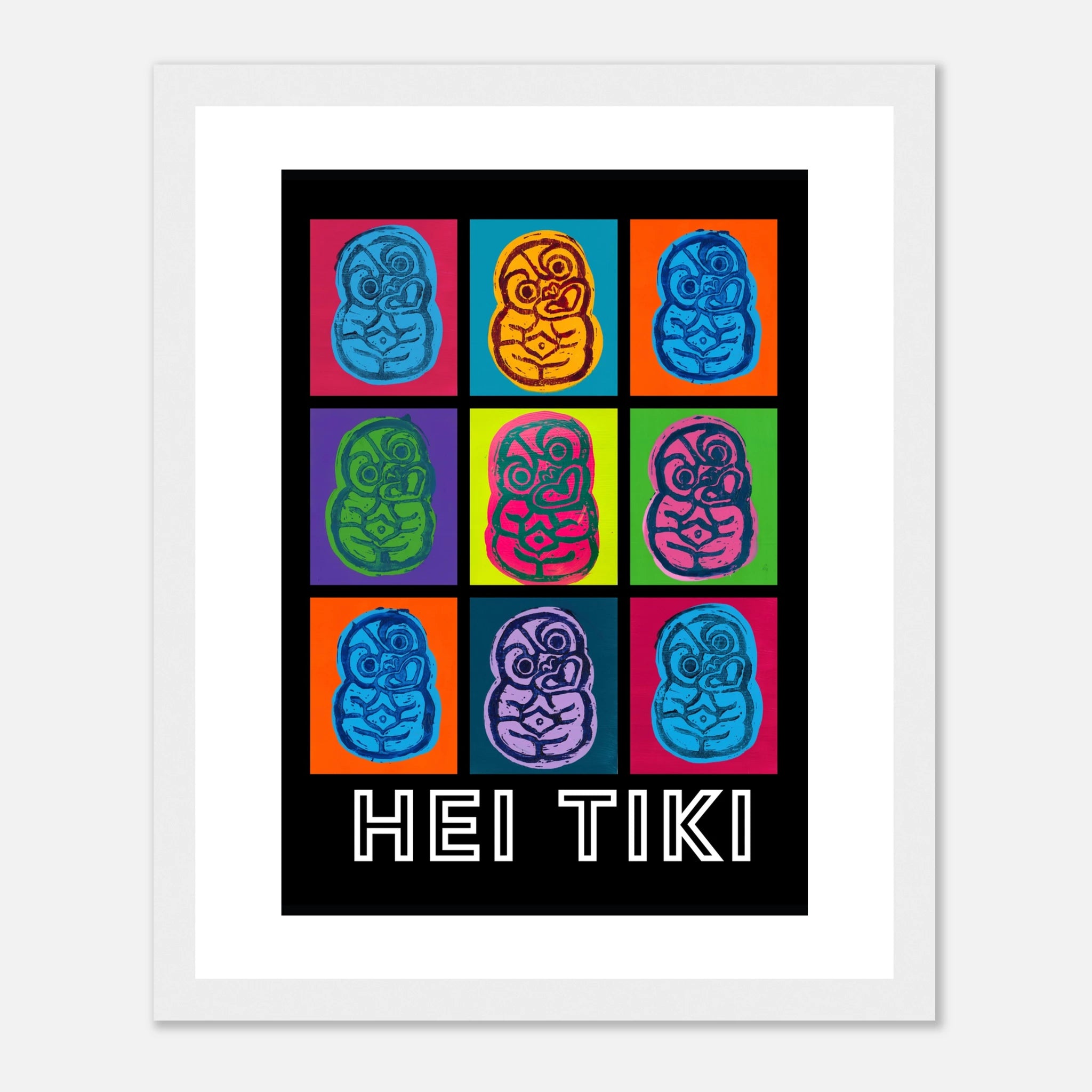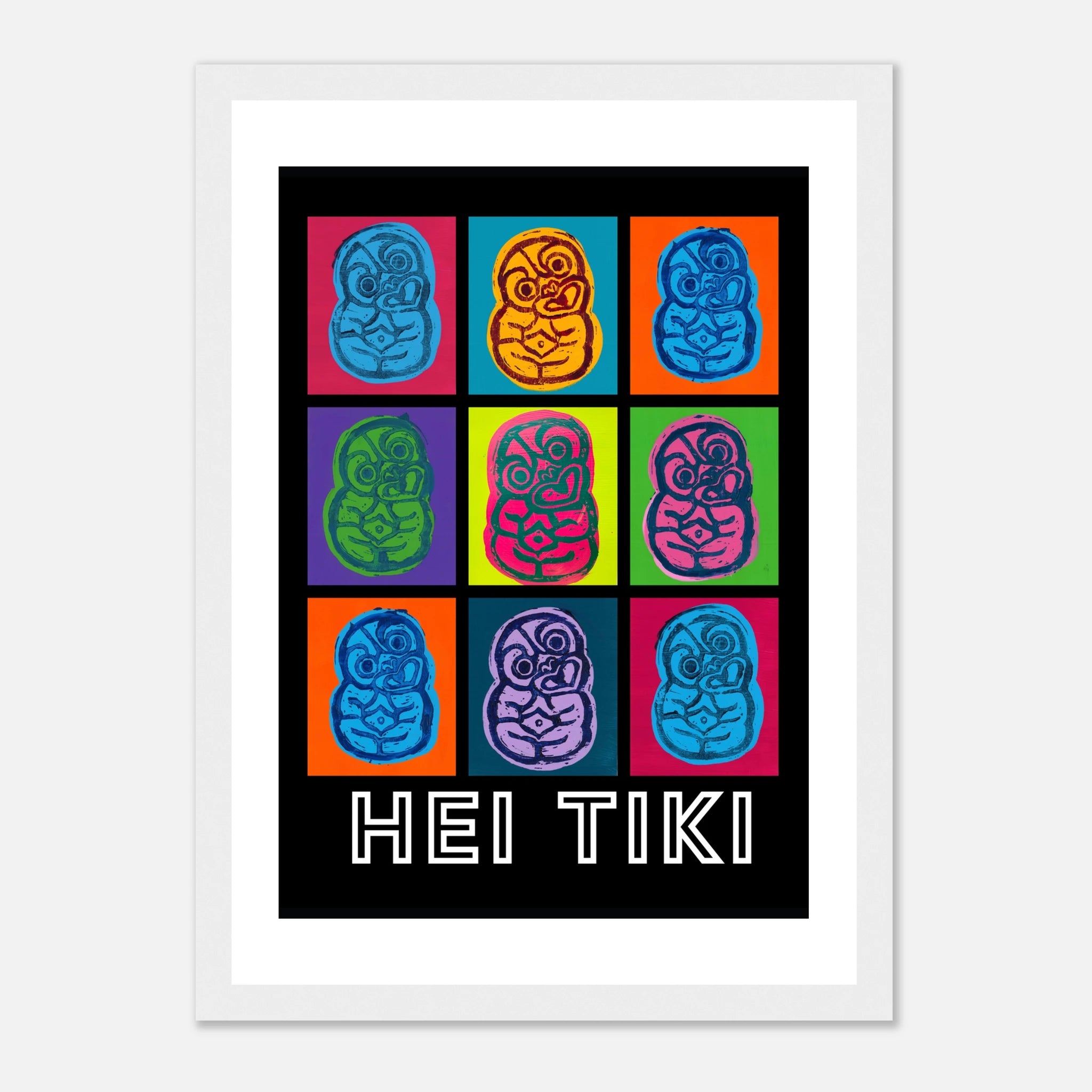 Created with lino print and acrylic paint, these pop art Tiki posters bring bold colour to any space.