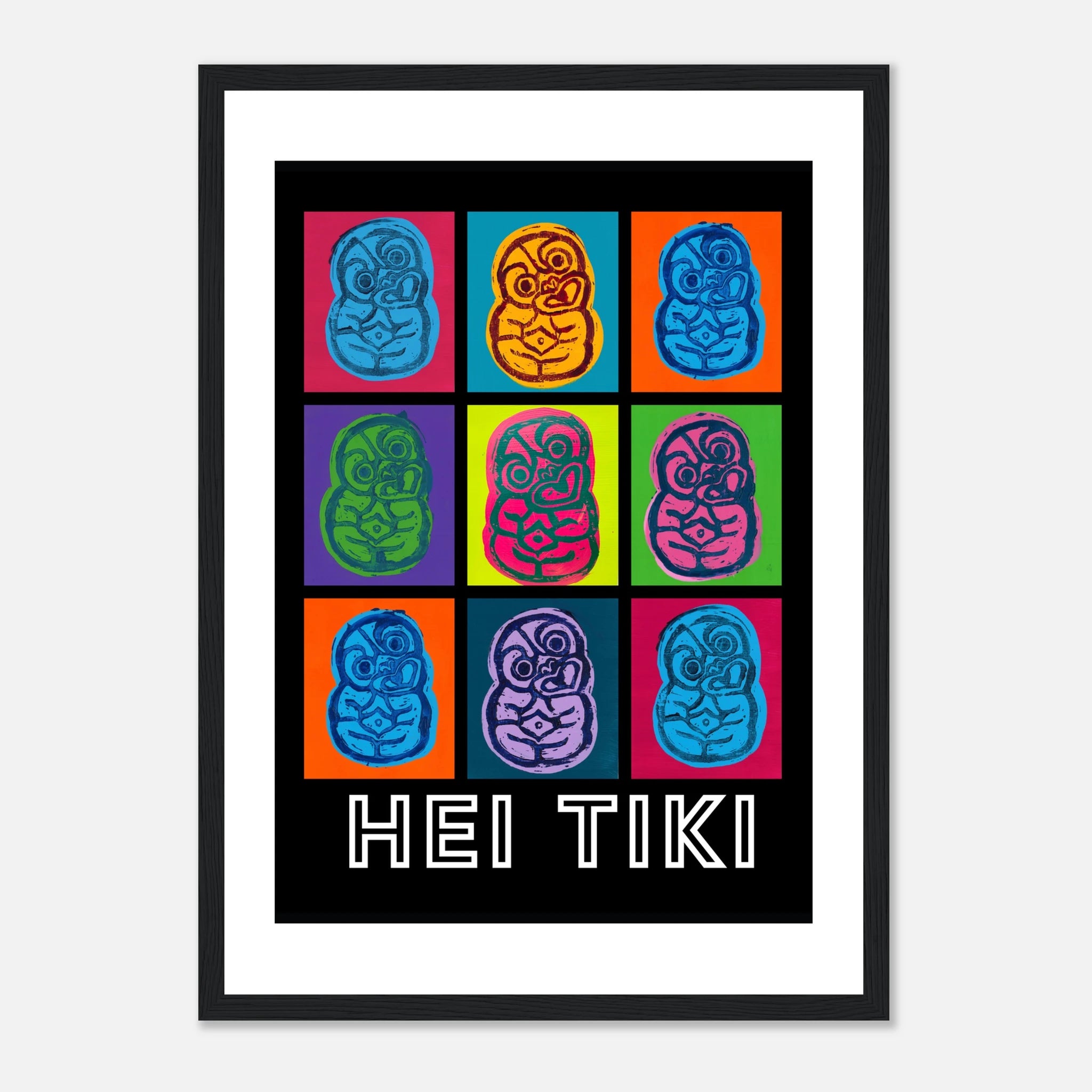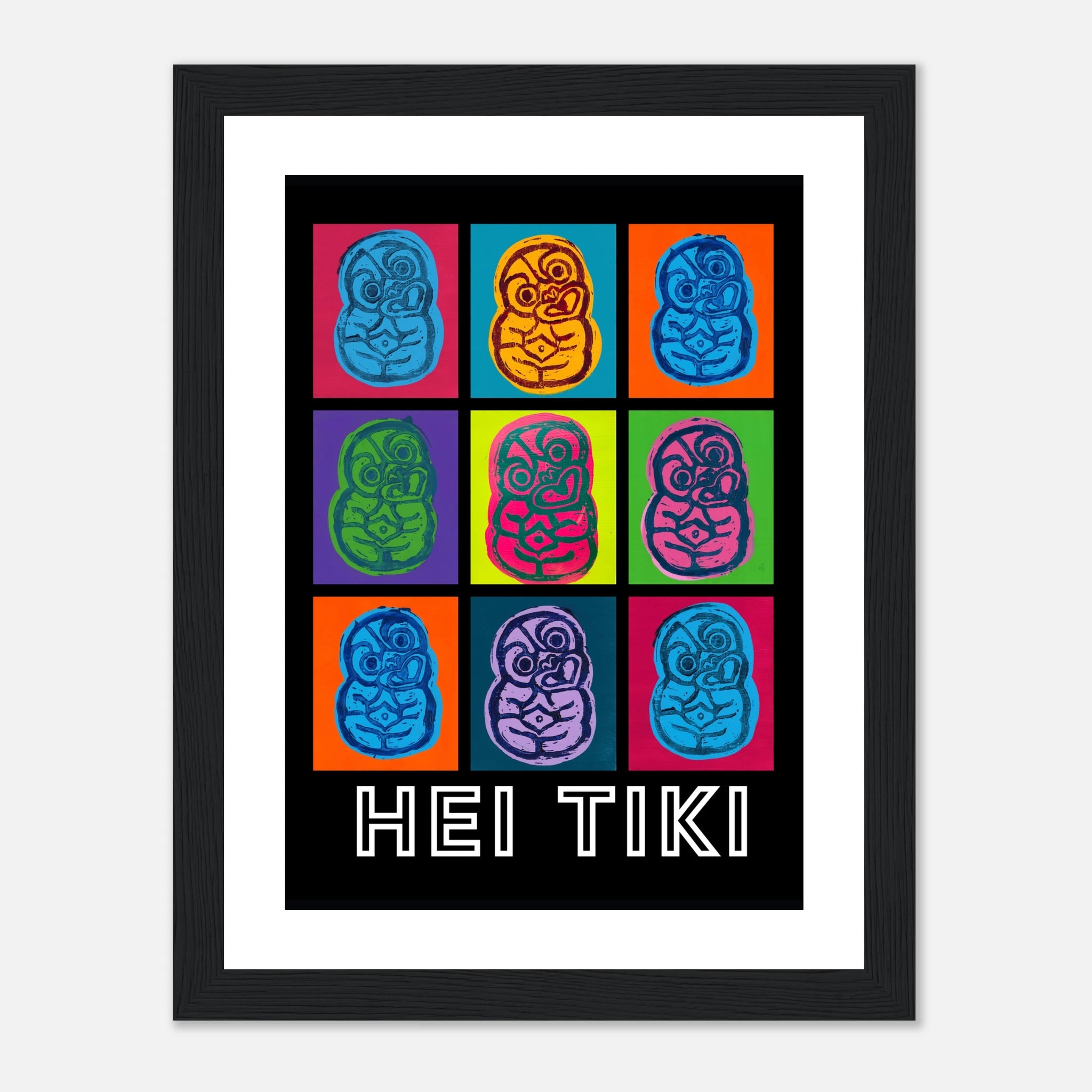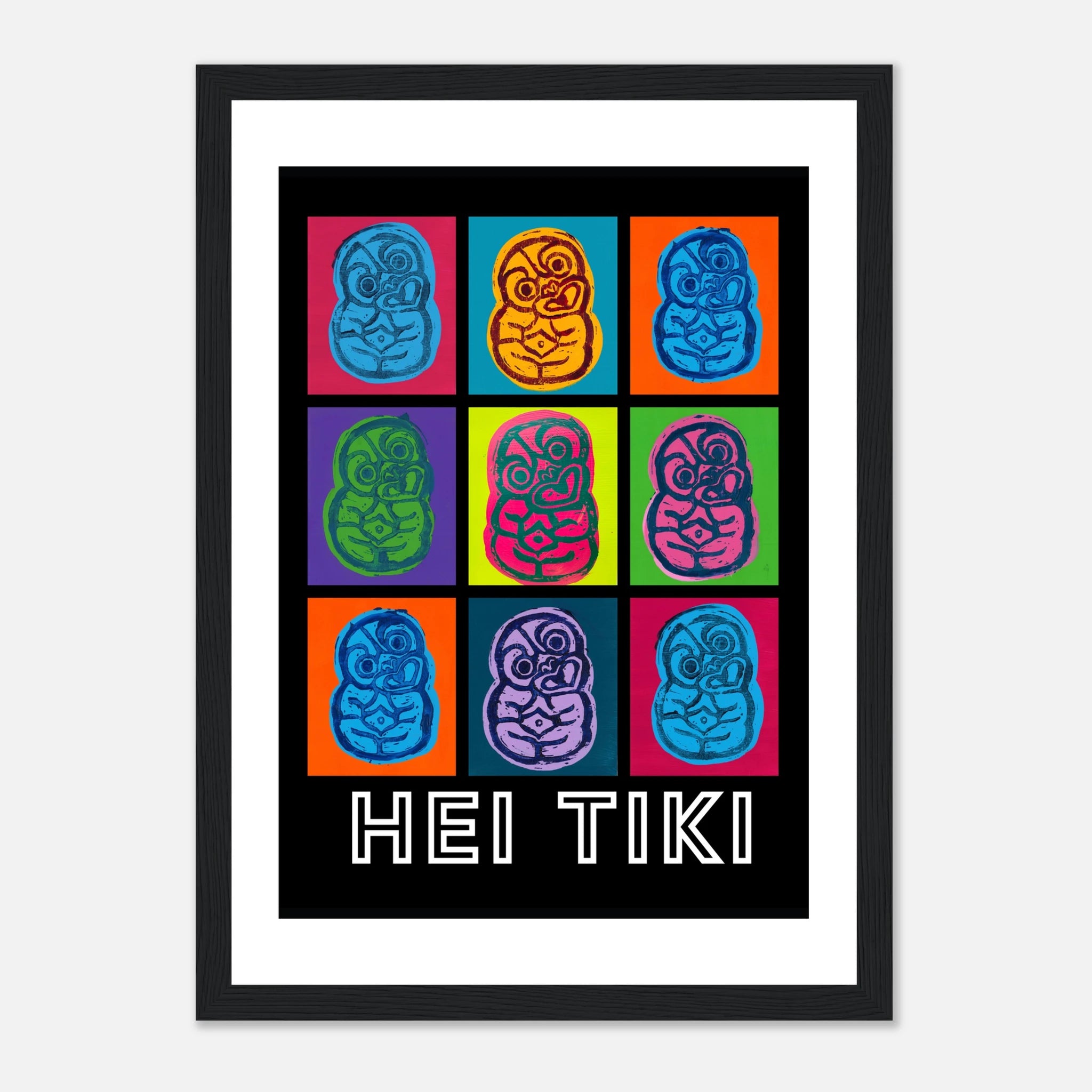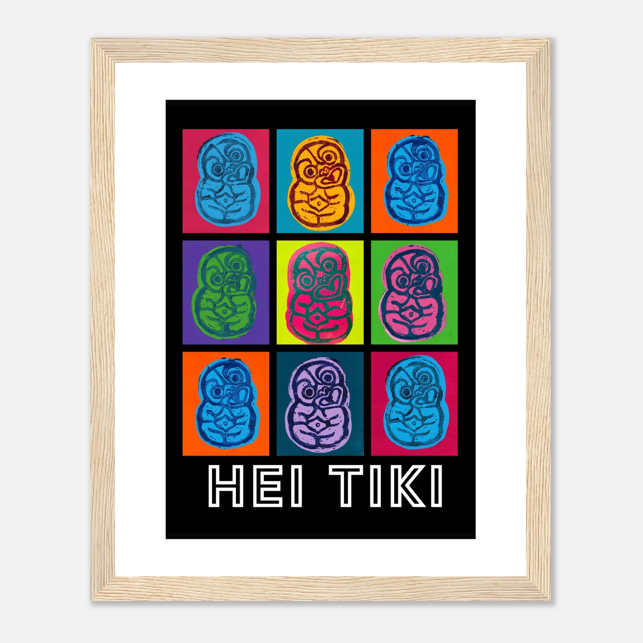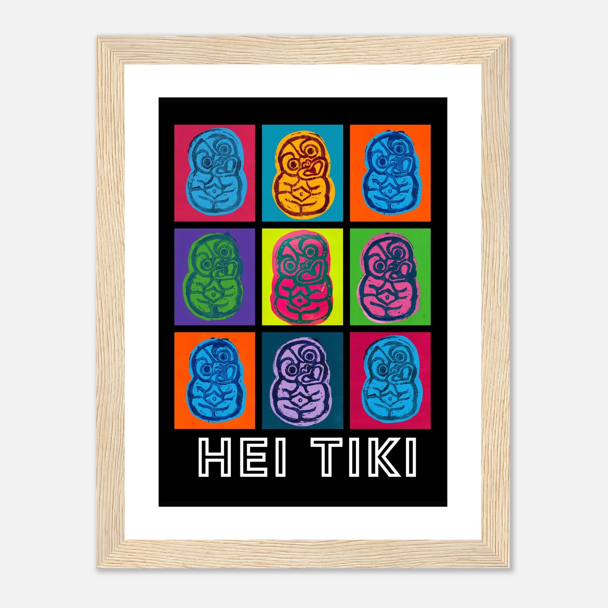 Created with lino print and acrylic paint, these pop art Tiki posters bring bold colour to any space.